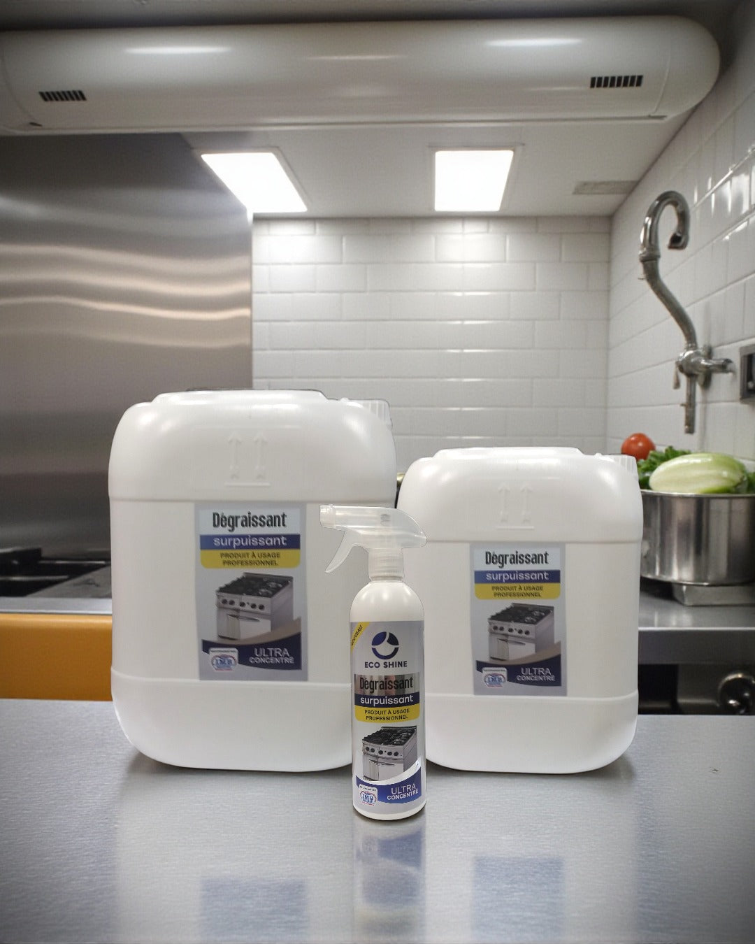 Le Dégraissant Superpuissant Ecoshine est la solution incontournable pour les cuisines professionnelles exigeantes.